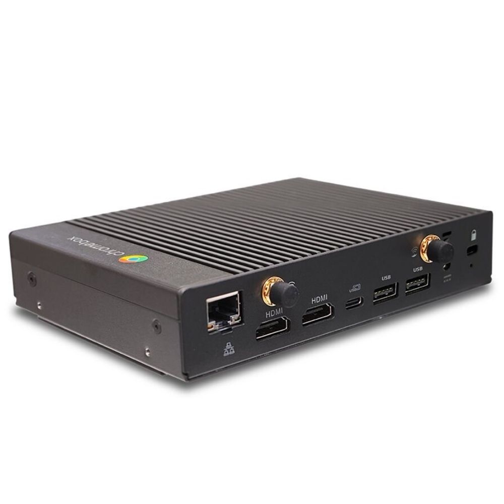 In practical deployments, this Chromebox is ideal for digital signage with dual display outputs, browser‑based POS stations, or ChromeOS‑managed user endpoints in enterprise settings. It is not intended for heavy local compute tasks, PC‑class virtualization, or graphics‑intensive applications.