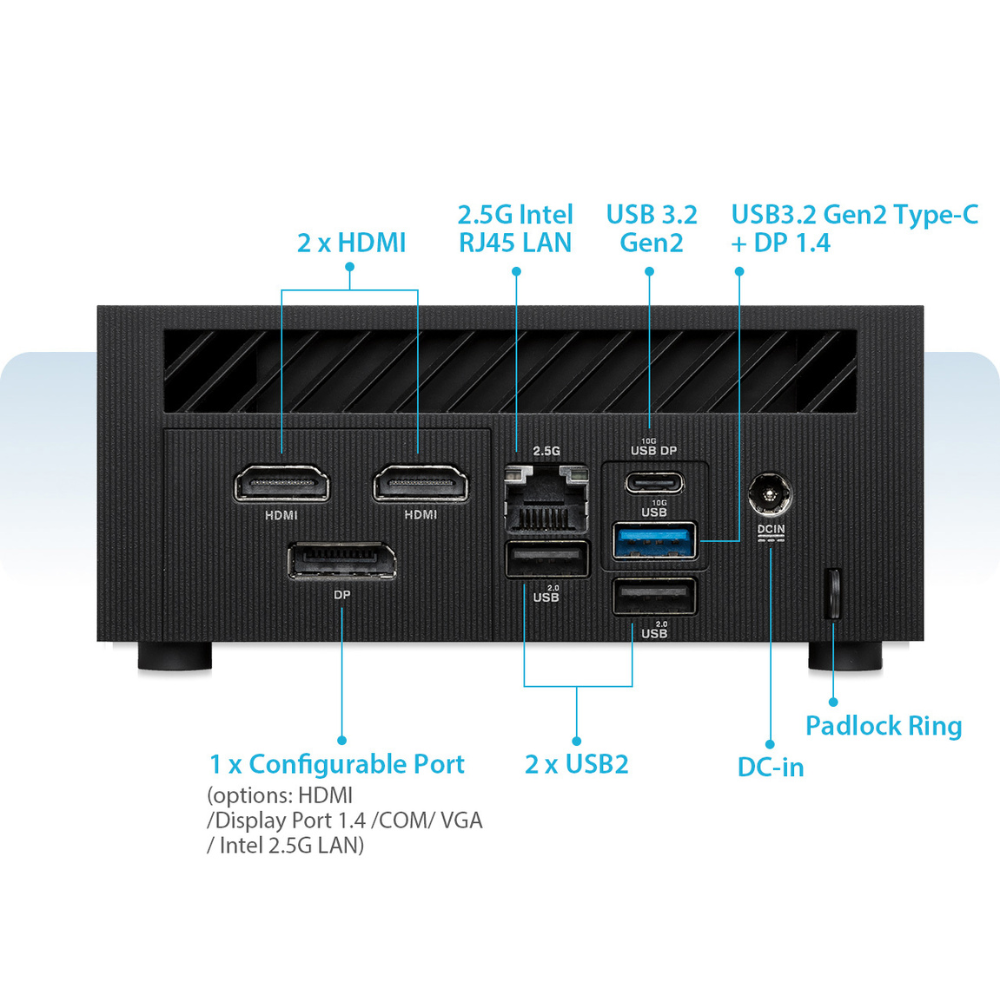 The ASUS PN65-SYS582PEFD0 is an ultra-compact mini PC designed for enterprise users, IT administrators, and edge deployment environments requiring compute density in limited physical space. It delivers workstation-class processing in a small footprint suitable for office, retail, and embedded applications.
