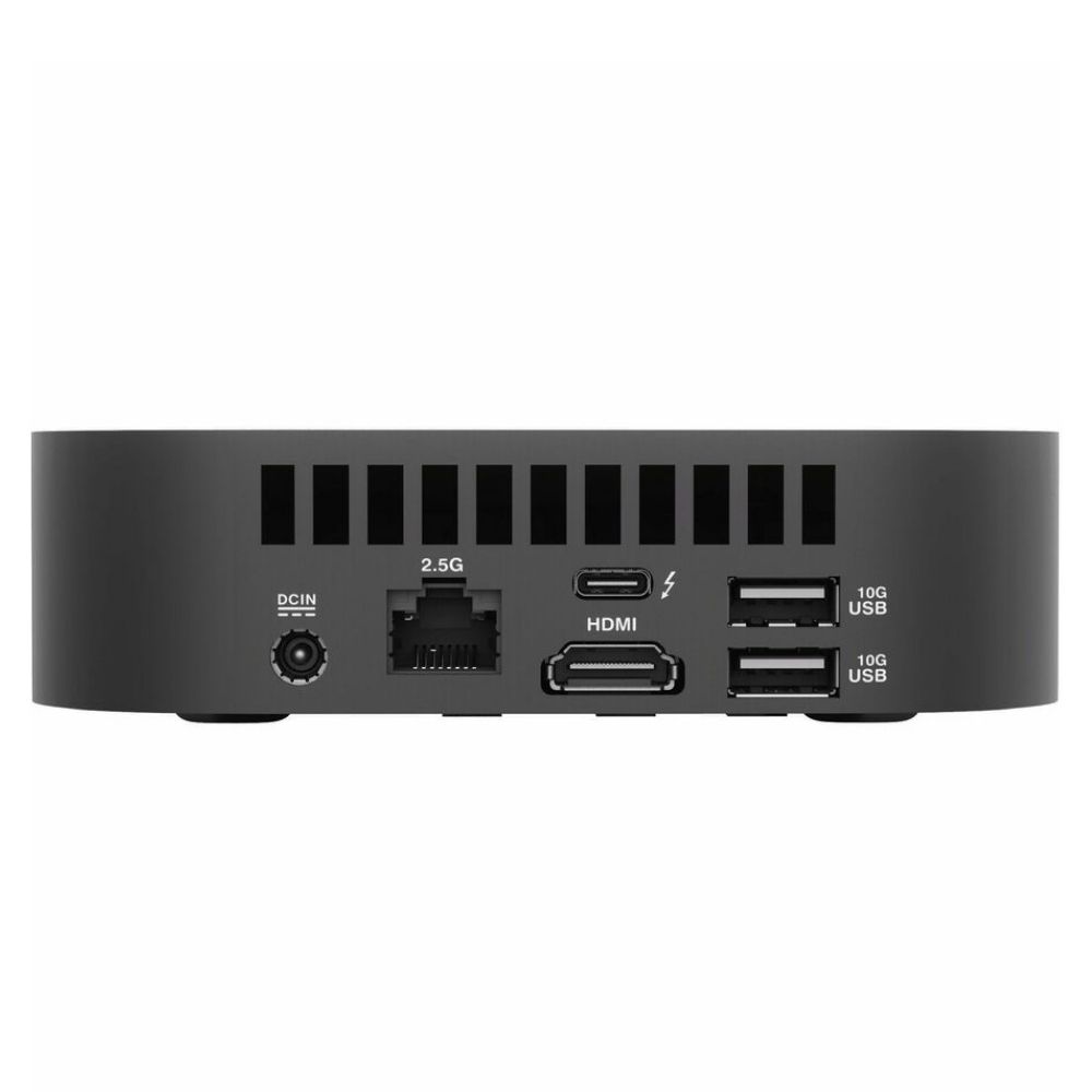 It integrates Windows 11 Home and supports AI frameworks via Intel AI Boost NPU, making it suitable for AI-assisted applications, office productivity, and developer environments. Power delivery is handled through an external adapter with low overall power consumption (~120 W max), supporting continuous operation in office or edge setups.