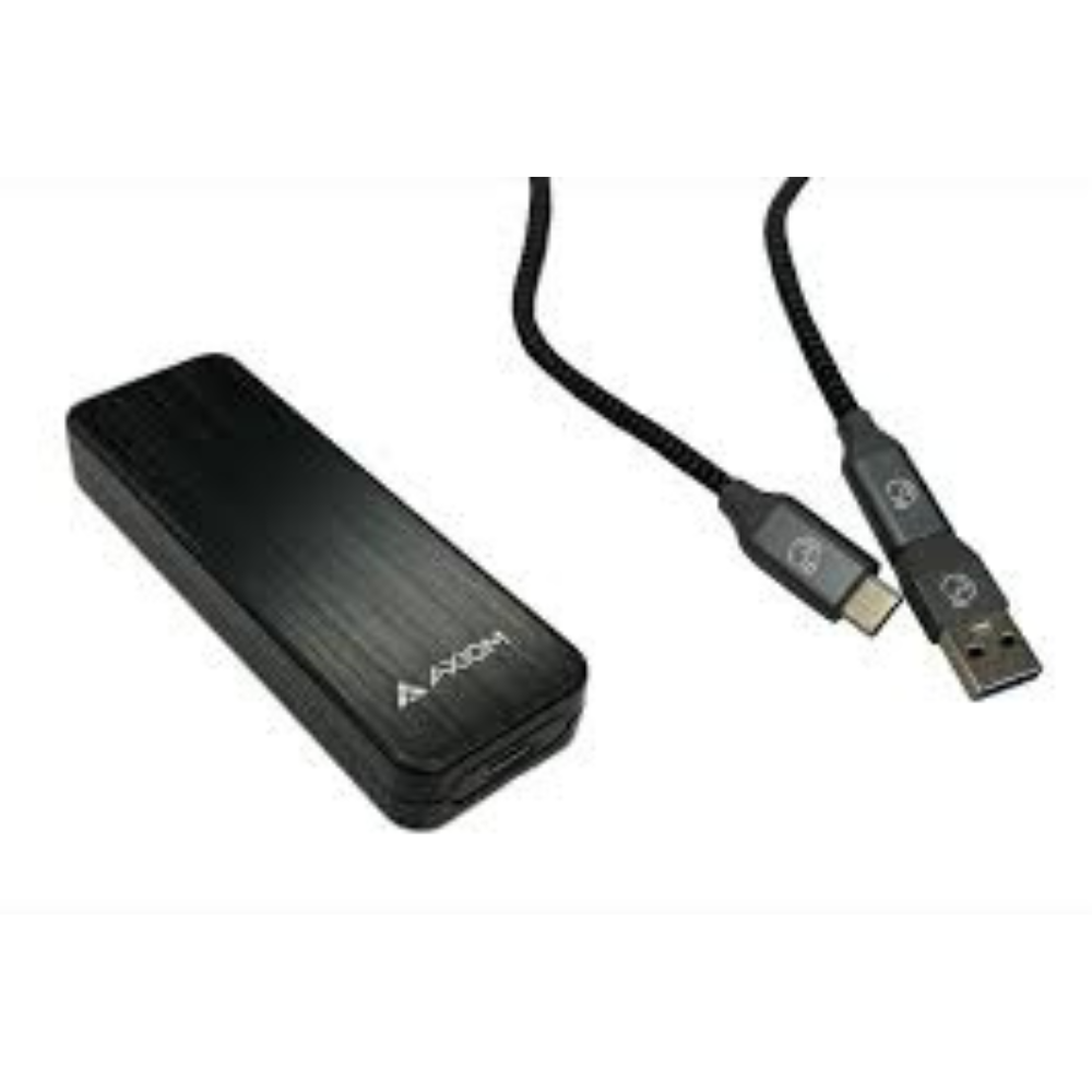 The Axiom AXG104011 is a portable external solid state drive with 2 TB of storage capacity and USB‑C connectivity optimized for high‑speed data transfer up to USB 3.1 Gen2 rates (10 Gbps). The device is intended for IT professionals, systems integrators, and technical users who need reliable portable storage for data capture, backup, and transport between workstations, servers, or content creation systems. It addresses the need for large capacity storage with quick file transfer performance in environments that lack internal expansion options or require mobility.