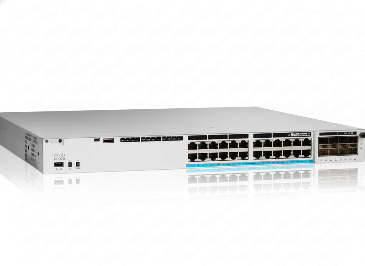 The Cisco C9300L-24P-4X-A is a fully managed 24-port Gigabit Ethernet access switch from Cisco’s Catalyst 9000 Series. It delivers enterprise-grade performance, robust security, and scalability for modern networks. Each of its 24 ports supports PoE+ (up to 30 W per port), powering IP phones, wireless APs, and cameras without separate adapters. Four 10 Gigabit SFP+ uplink ports offer high-bandwidth connectivity to distribution or core layers, ensuring smooth traffic flow. The switch supports Cisco StackWise-320 technology, allowing up to eight units to operate as a single logical switch for redundancy and ease of management. With the Network Advantage license, it enables advanced Layer 3 routing, segmentation, automation, and analytics for digital-ready networks. The C9300L-24P-4X-A combines compact design, high PoE power budget, and flexibility for growing enterprise environments.