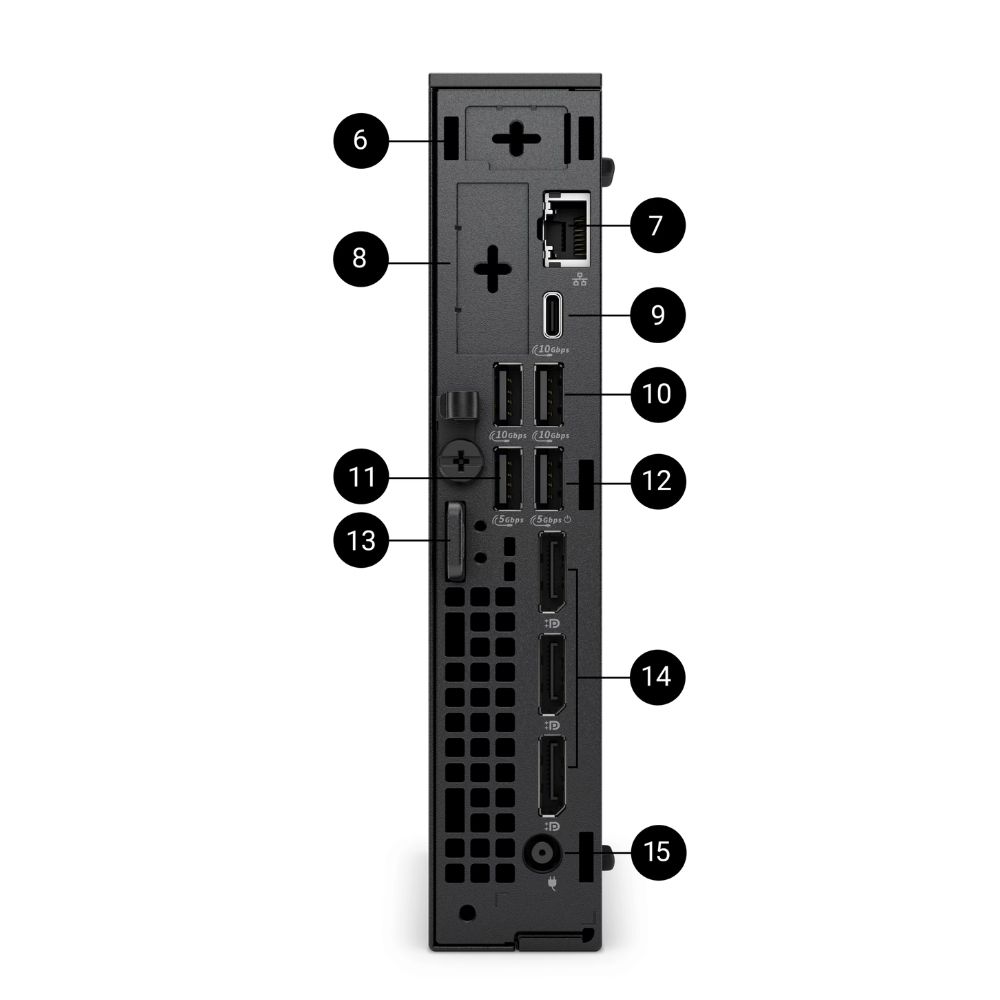 The system supports modern enterprise connectivity including Wi-Fi 6E and Gigabit Ethernet, along with multiple USB ports for peripherals and docking expansion. Its compact chassis allows deployment behind monitors, under desks, or in space-constrained environments such as kiosks and shared workstations.