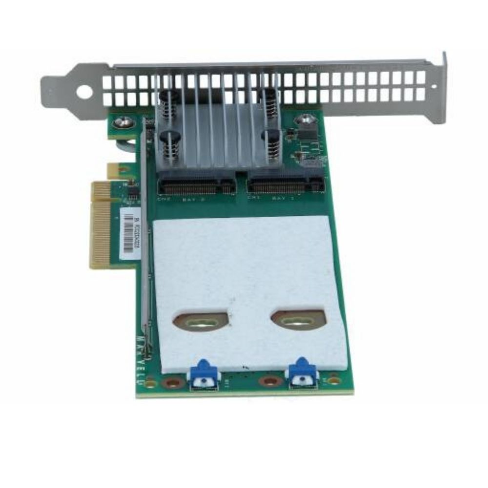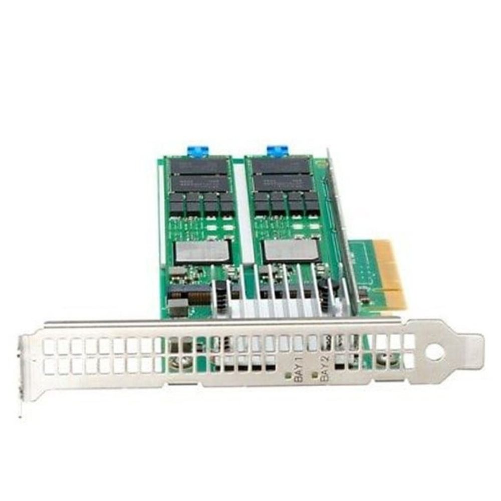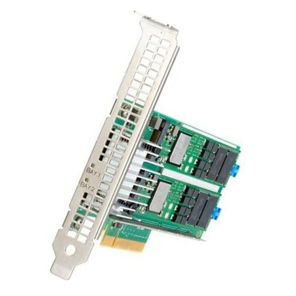 This device is a PCIe Gen3 x8 plug-in card that integrates two M.2 NVMe SSDs, each with 480GB capacity, pre-configured to support RAID 1 mirroring at the hardware level. This ensures redundancy for the operating system, reducing the risk of downtime due to drive failure while maintaining consistent boot performance.