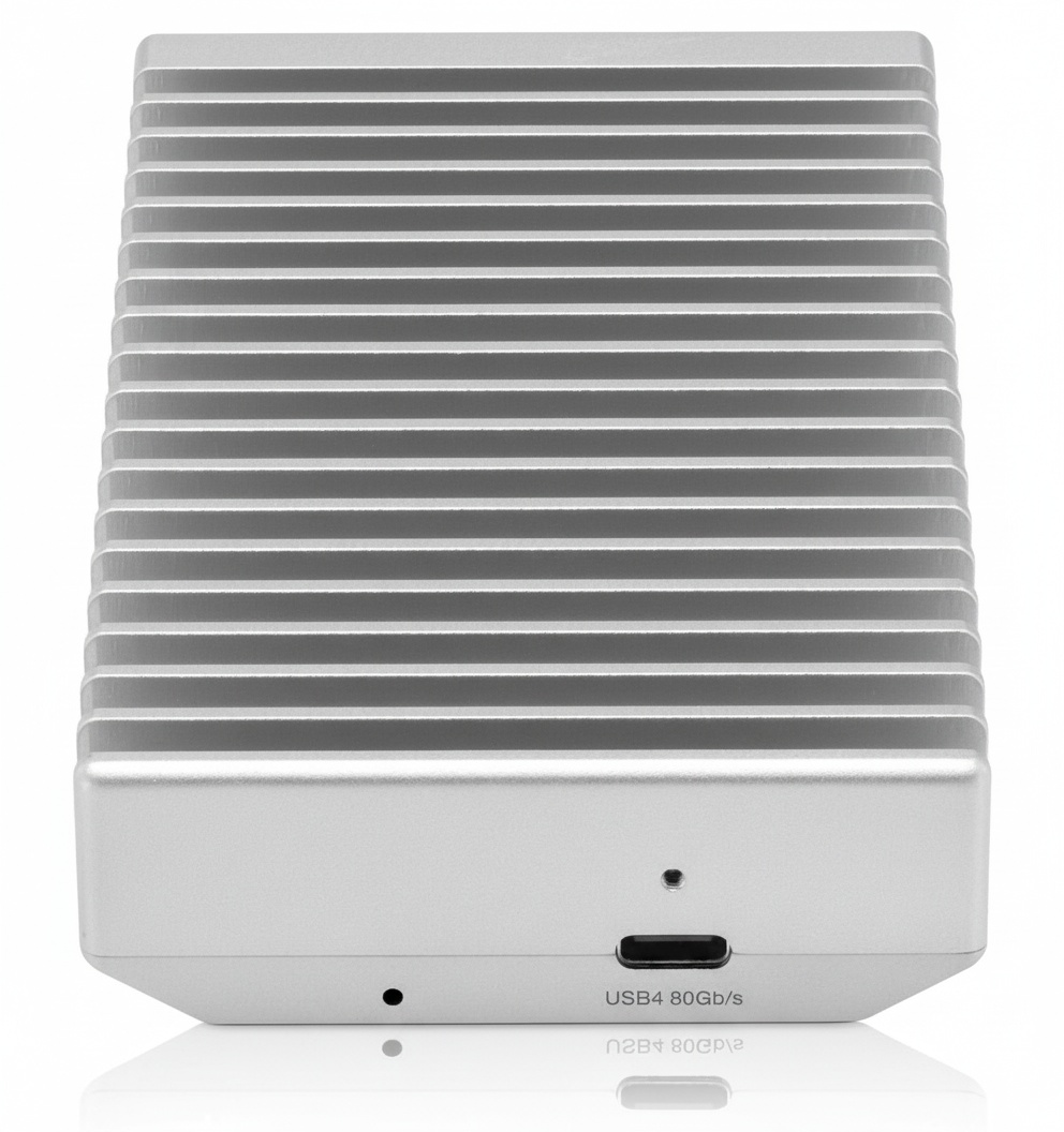 The drive utilizes an 80 Gb/s USB4 interface over USB-C, delivering sequential transfer speeds up to approximately 6000 MB/s, approaching internal PCIe SSD performance levels. It is designed to support demanding use cases such as 8K video editing, AI/ML datasets, and real-time content workflows where sustained throughput and low latency are required.