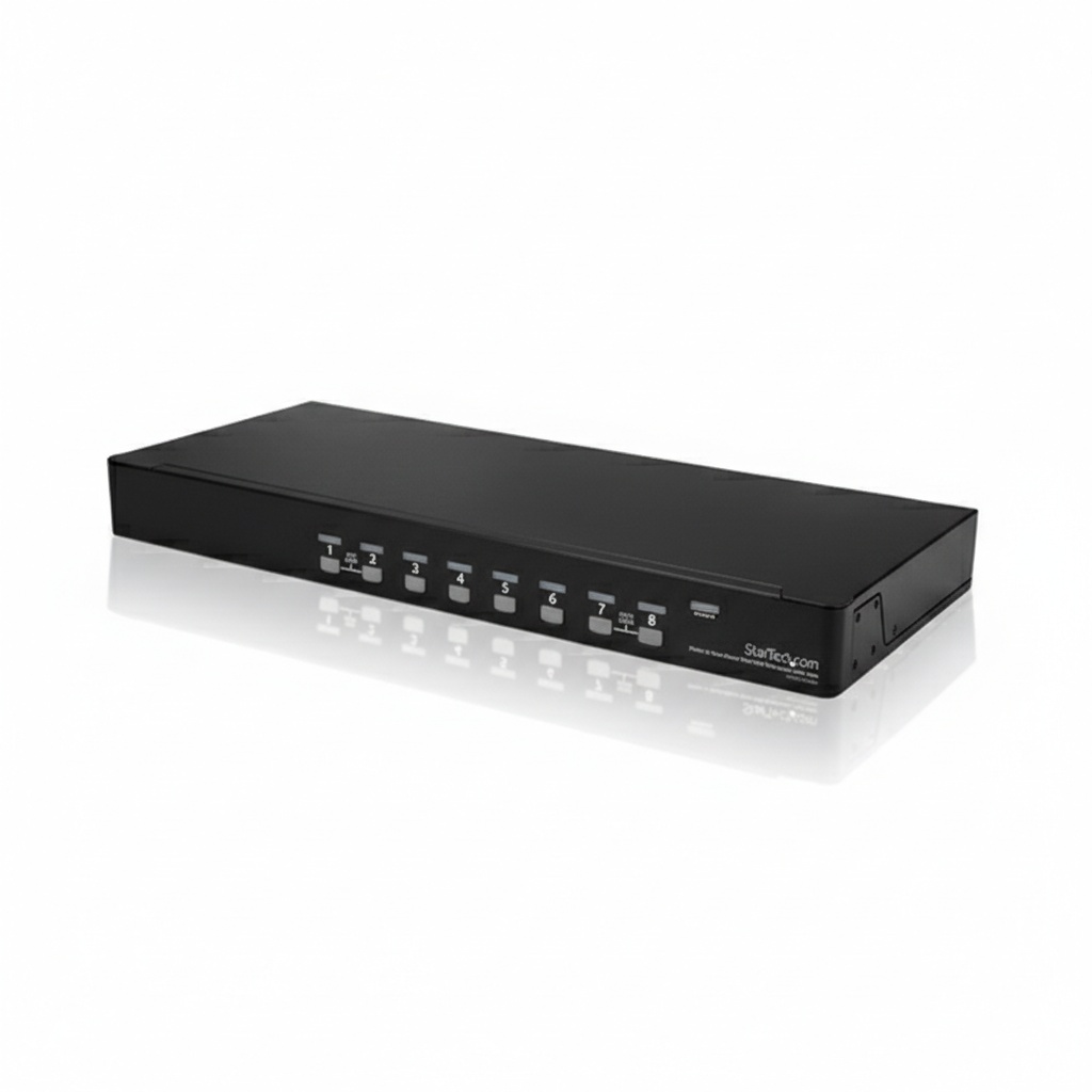 The StarTech.com SV831DUSBU is a professional-grade 8-port KVM switch designed for high-density server environments, including enterprise data centers, server rooms, and remote branch offices. This 1U rack-mountable solution allows IT administrators to manage up to eight VGA-connected computers or servers using a single keyboard, mouse, and monitor console. By supporting both USB and PS/2 interface connections, the unit provides the flexibility required to manage legacy hardware alongside modern systems within the same rack.
