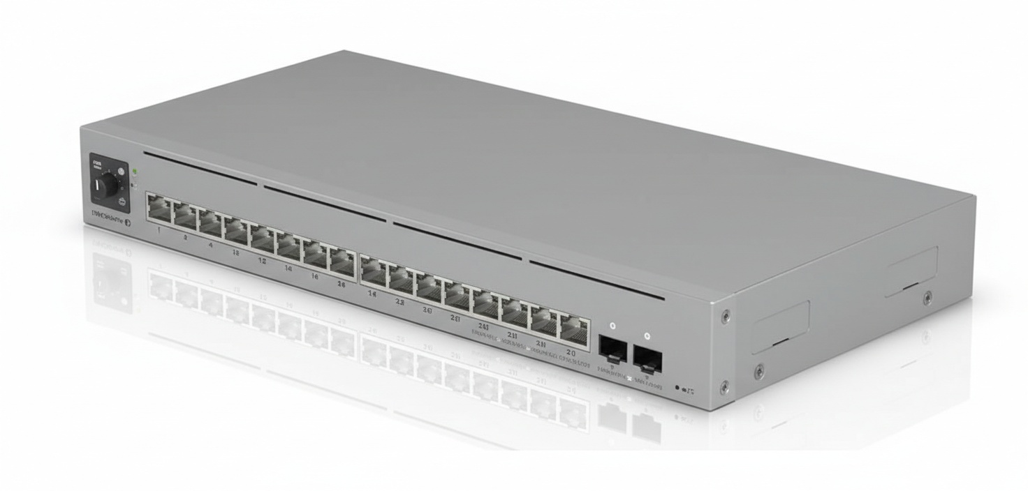 The Ubiquiti USW-Pro-Max-16-PoE is a high-performance, compact Layer 3 switch designed to bridge the gap between edge access and high-bandwidth distribution. It is specifically engineered for modern office environments, retail branches, and high-end residential deployments where multi-gigabit connectivity is required for Wi-Fi 6/7 access points and power-hungry IoT devices.